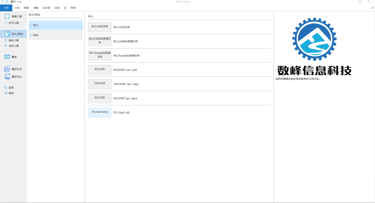 点击TauFlow主界面菜单来中的『文件』按钮,选择『导入/导出』选项,如下图4所示数据导出/导出界面