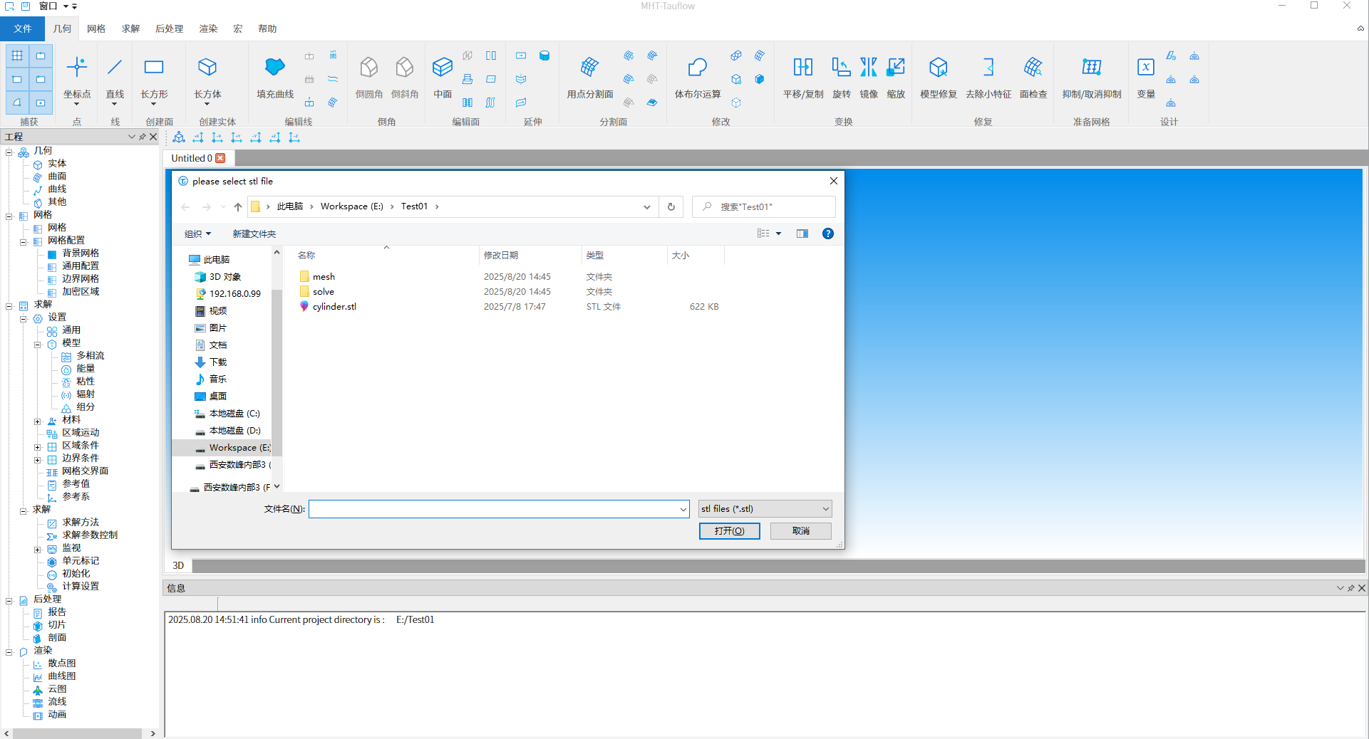 选择圆柱绕流cylinder.stl文件,导入几何信息,如下图6所示