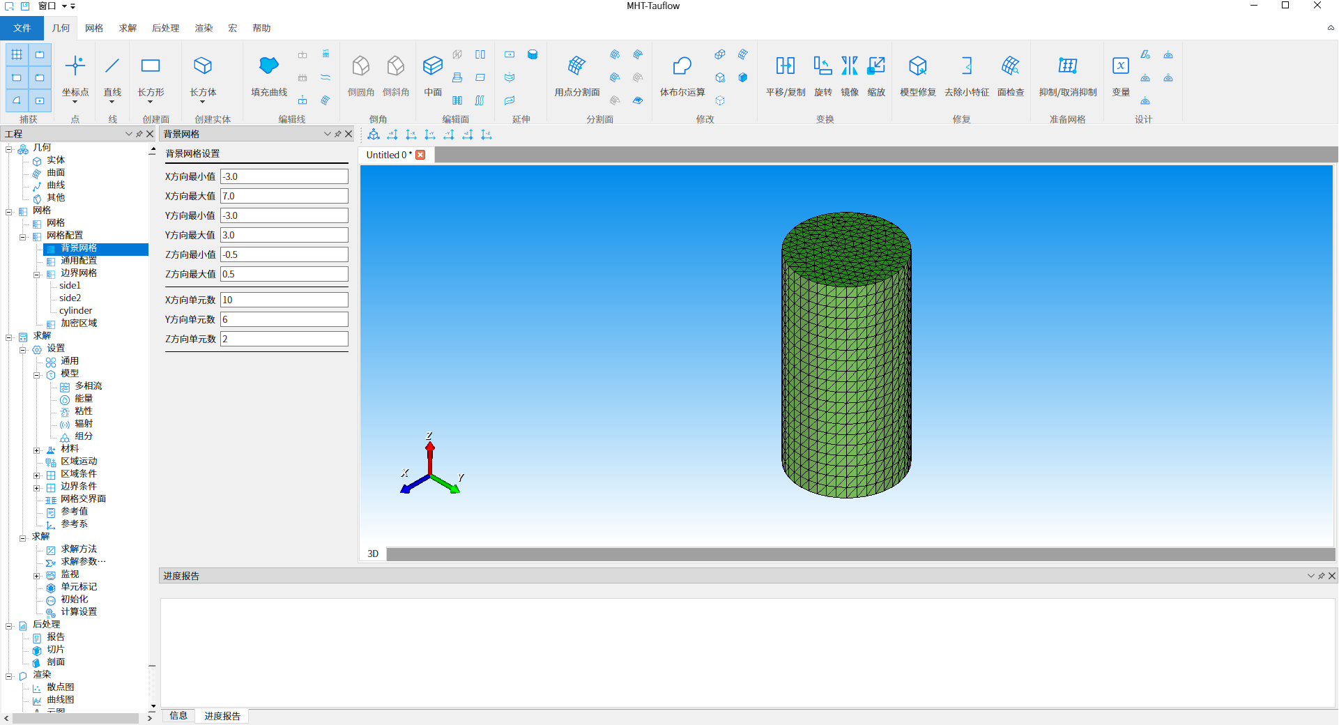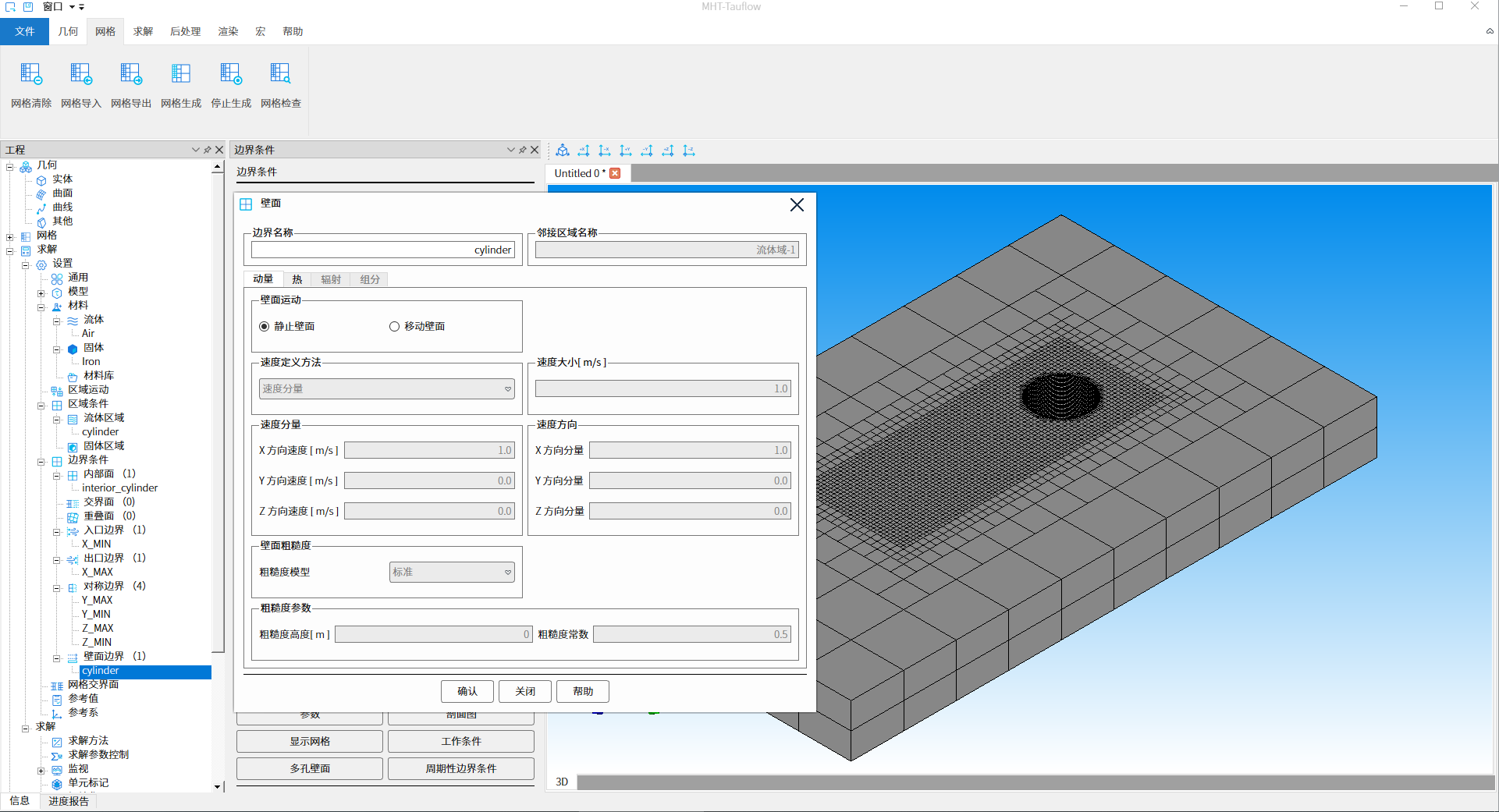 完成cylinder.stl几何信息导入口,双击工程树结构【网格 - 网格配置- 背景网格】节点,打开背景网格设置,此处使用默认值,如下图7所示