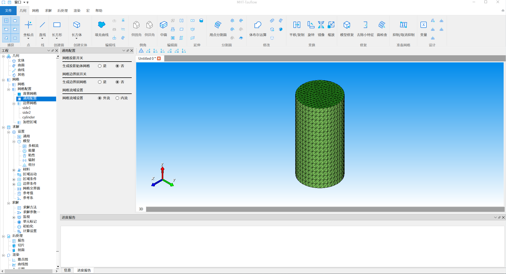 选择生成投影贴体网格『是』单选按钮