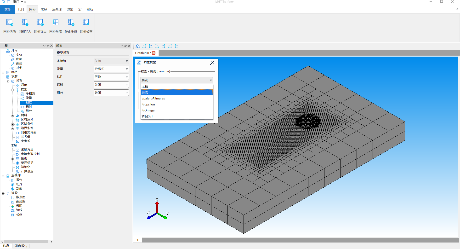在模型设置『粘性』下拉框中选择“层流”选项,点击『确定』按钮,完成粘性模型选项操作,如下图15所示