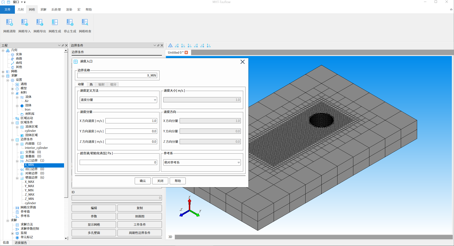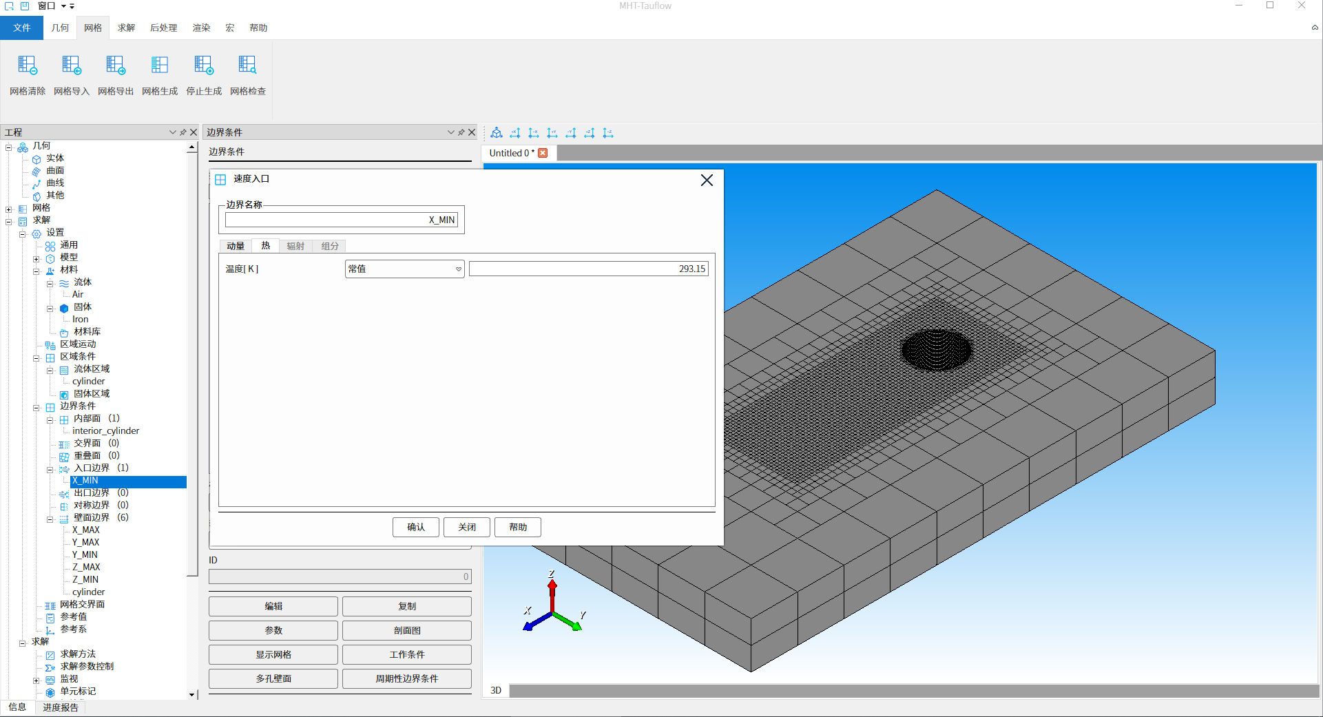 X_MIN:速度入口,流速1m/s,温度293.15K,如下图19、20所示