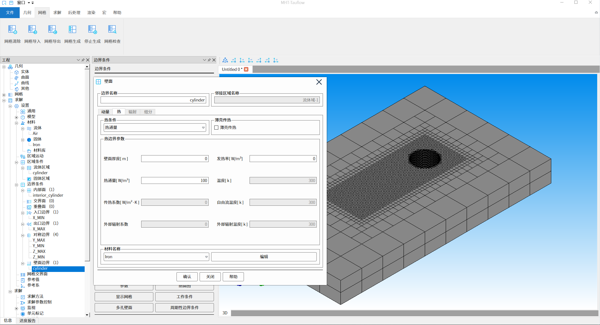 Cylinder:壁面,静止壁面,壁面热通量设置100[W/㎡],如下图24、25所示