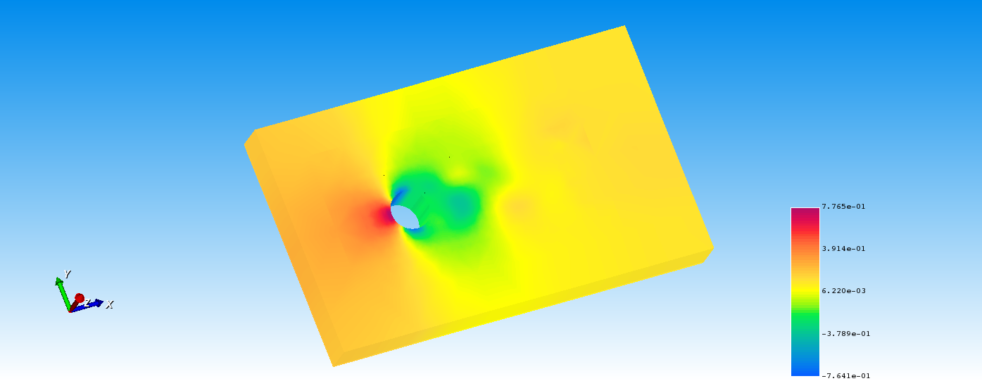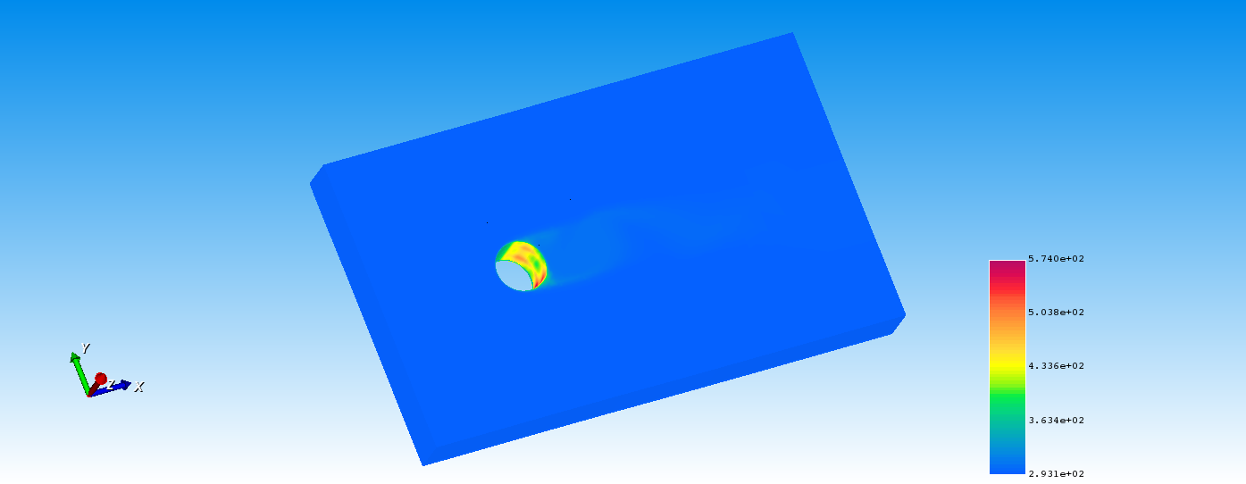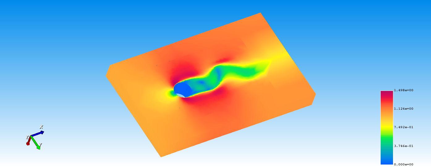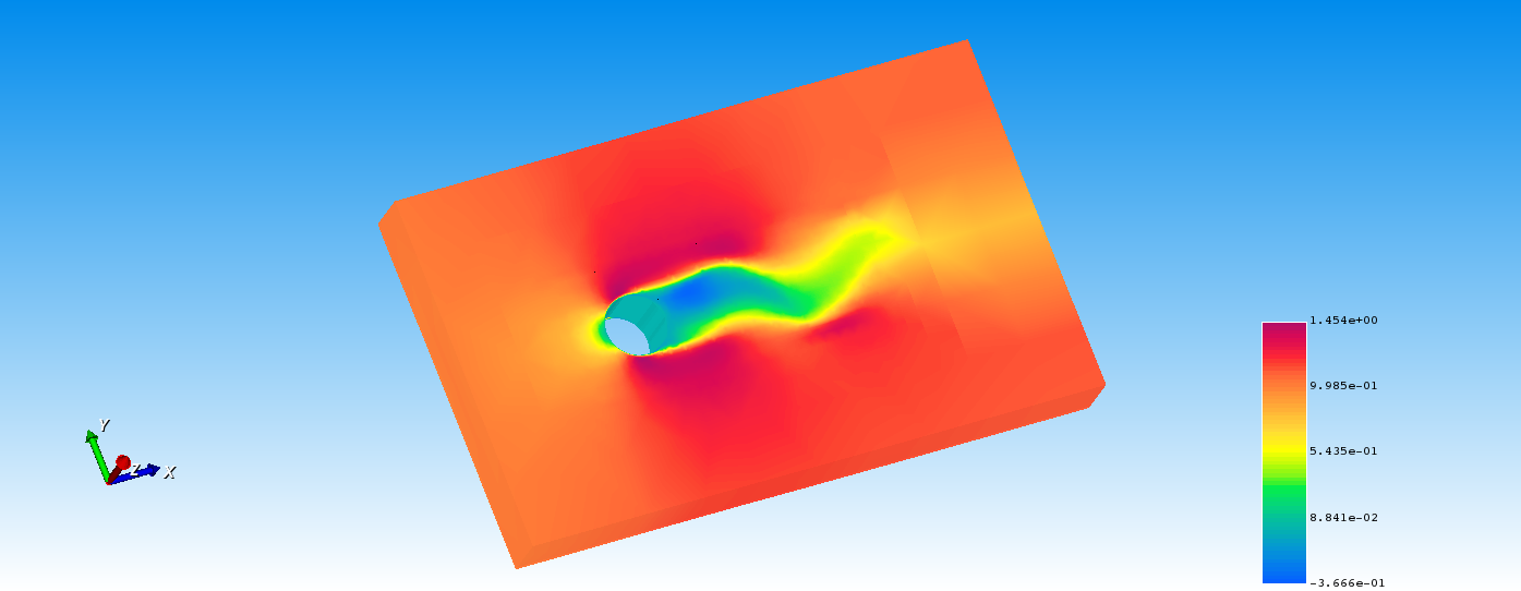 圆柱的直径为1m,计算区域为10×6×1m。圆柱绕流本是用CFD的一个经典问题,通常用于不同雷诺数下的尾涡脱落频率与平均升阻力。该问题雷诺数Re=200。